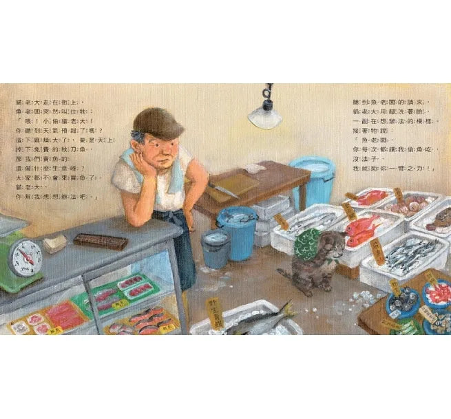 It often goes to the fish boss's seafood shop to steal fish to eat.