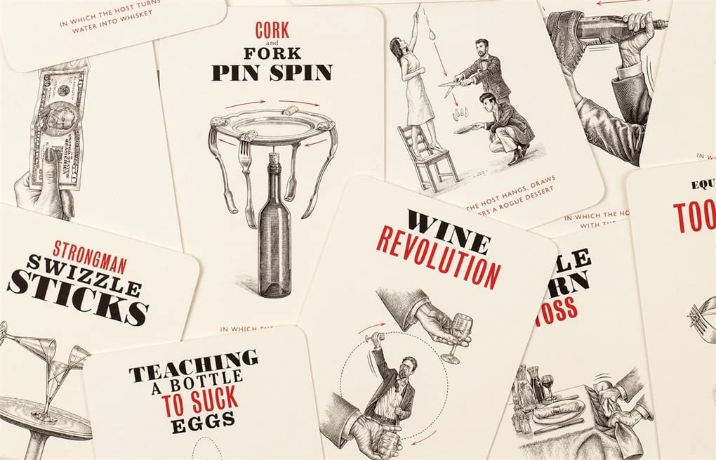 Twenty-one handsome cards presented in a beautiful gift tin illustrate each technique along with step-by-step instructions and explanations of the science behind the tricks. From sabering a bottle of champagne to hammering a needle through a coin, each of these tricks is guaranteed to wow your guests.