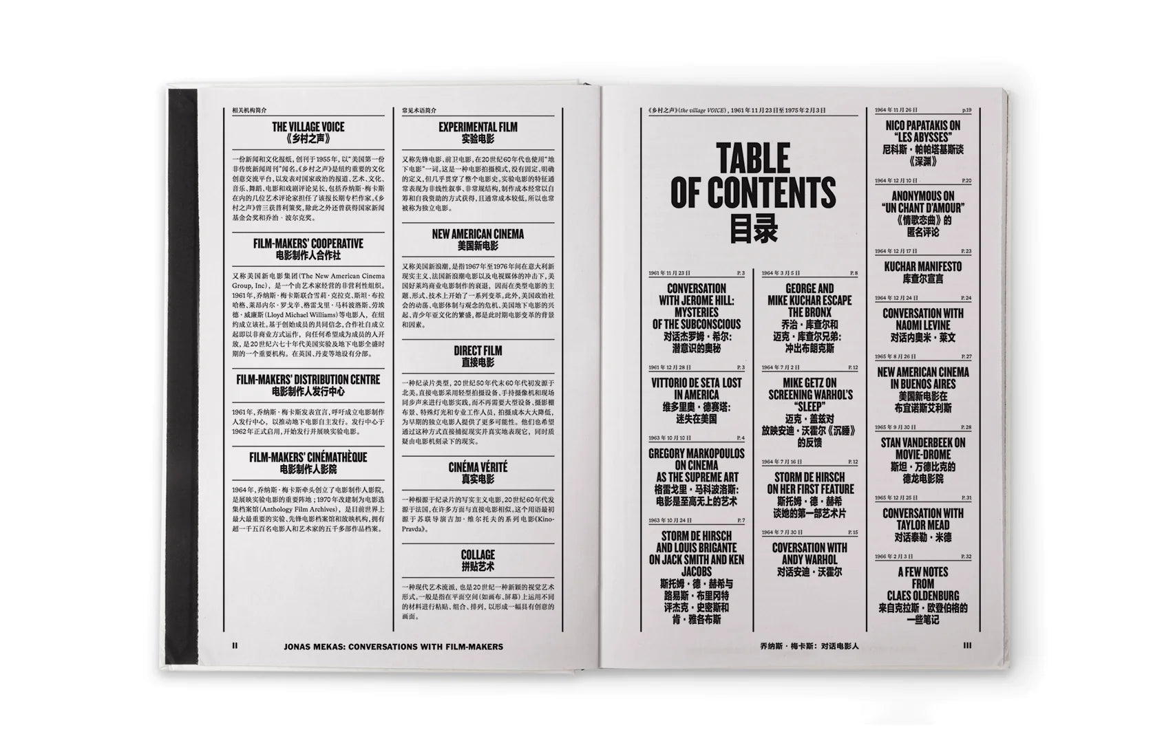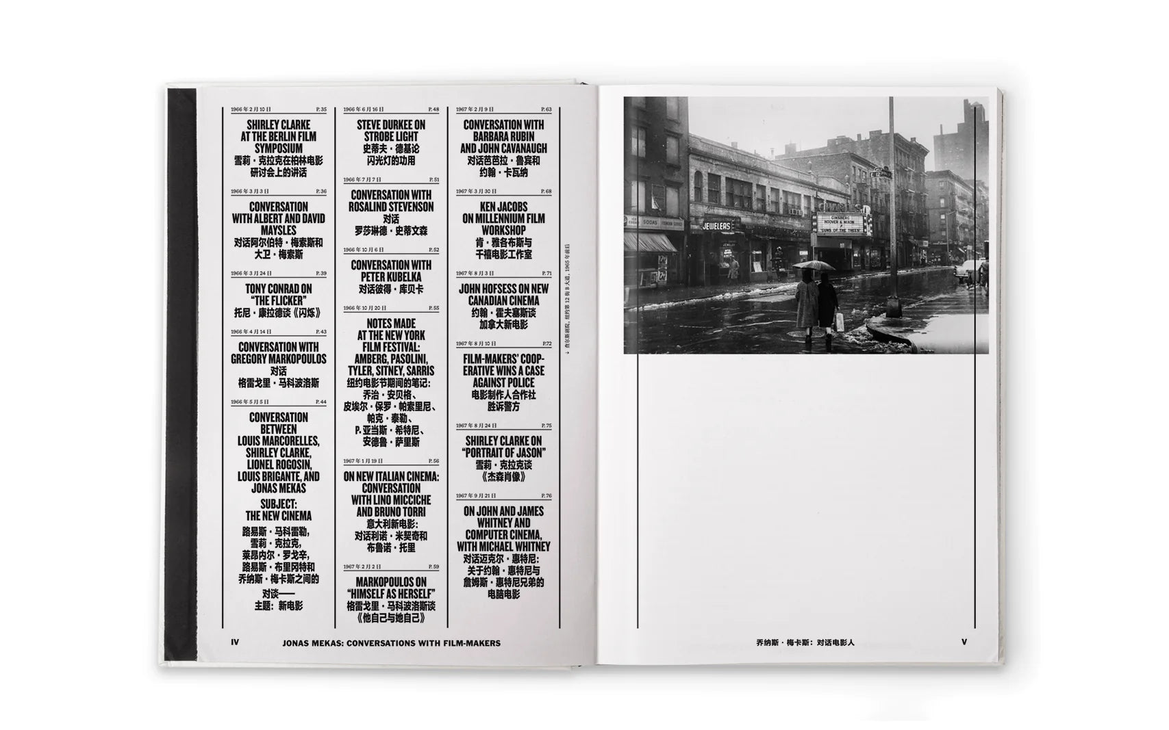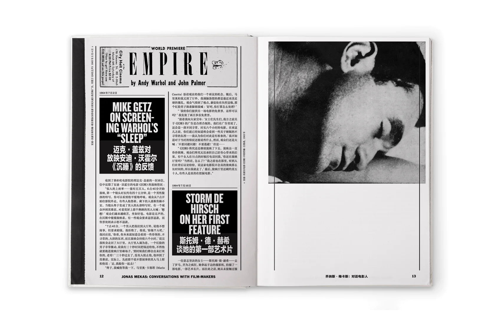 當年,梅卡斯是用攝像機記錄下採訪現場,再將 文字整理至“電影日誌”專欄,並會附上與受訪者相關 的劇照或照片作為每篇專欄的引子。《喬納斯·梅卡 斯:對話電影人》首次將梅卡斯與電影人朋友們的訪 談結集成書,收錄了 1961 年至 1975 年間“電影日 志”專欄刊載的部分採訪,參與的人有:斯托姆·德·赫 希、路易斯·布里岡特、安迪·沃霍爾、尼科斯·帕帕塔 基斯、阿爾伯特·梅索斯和大衛·梅索斯兄弟、彼得·庫 貝爾、阿涅斯·瓦爾達、哈里·史密斯、約翰·卡薩維茲、 斯坦·布拉哈格、蘇珊·桑塔格......書中還收錄了極具 文獻價值的私人信件和對談相關的圖片,另附有相關 人物索引。