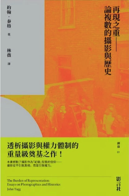 藝術史學家約翰.泰格(John Tagg)洞察攝影所潛藏的種種 權力機制,以及隨之建立的意義生產與真相體系。他檢視 「攝影史」的隱晦面,論辨自十九世紀以降,「攝影」如何在資 本主義與政府職能的擴張下急速發展、如何形成綿密的社會 監控與規訓,以及如何為支配階級所需的社會秩序提供服務。
