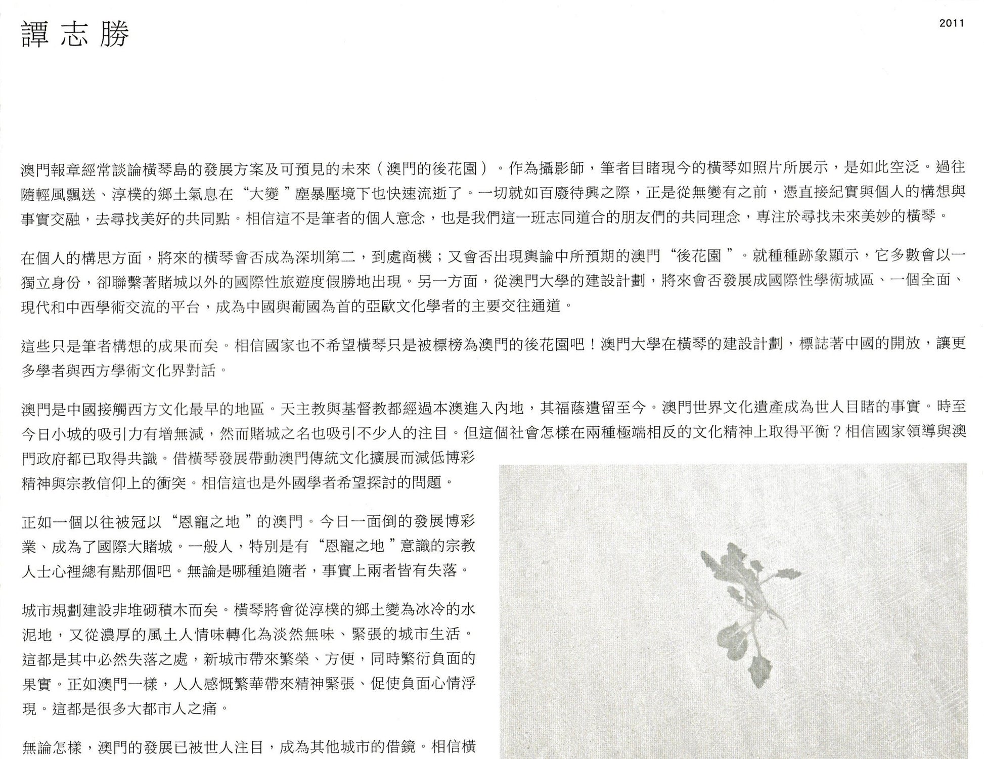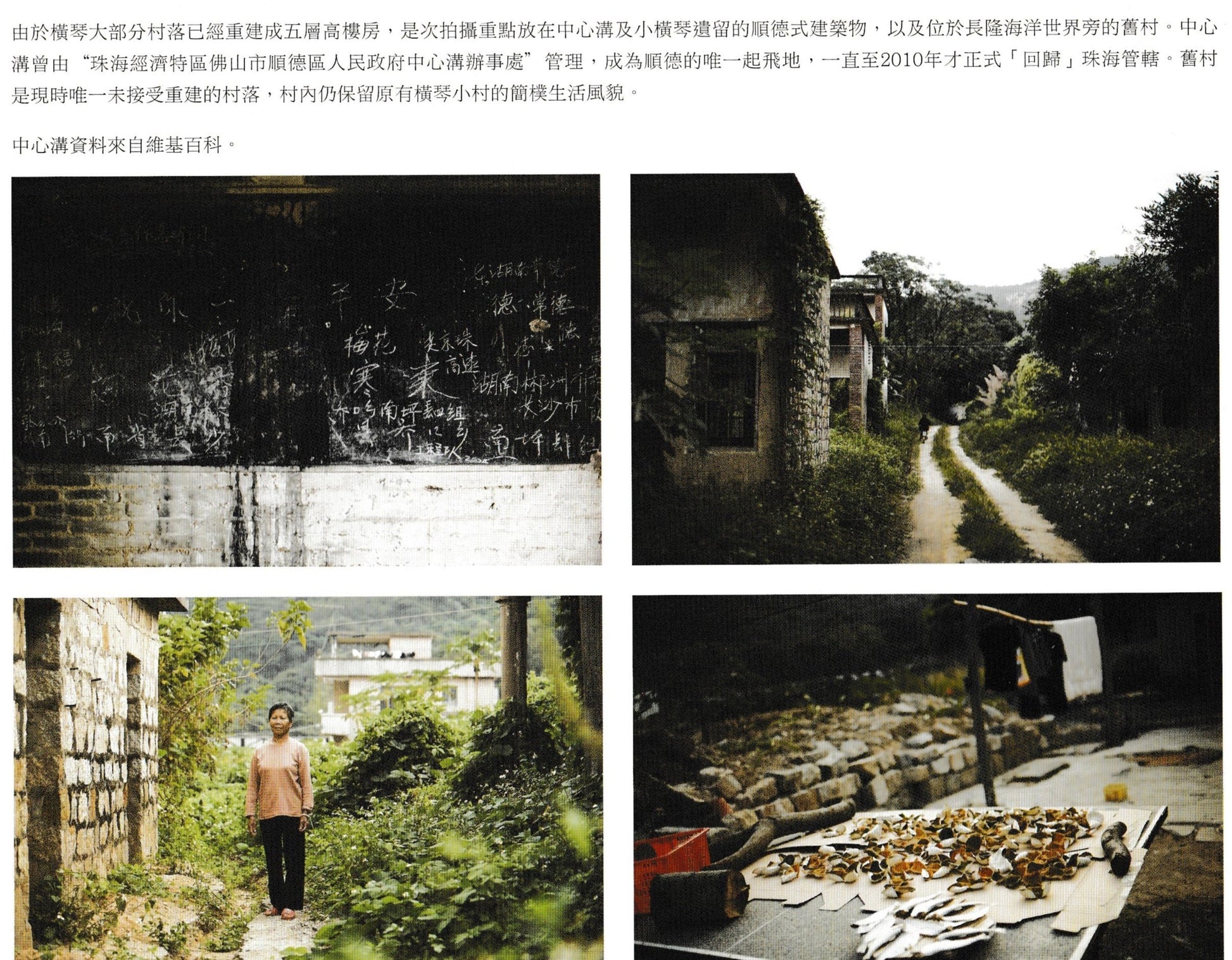攝影集精選2011、2014、2017展覽的攝影作品,紀錄多年來橫琴社會面貌以及人文生活的巨大變遷。