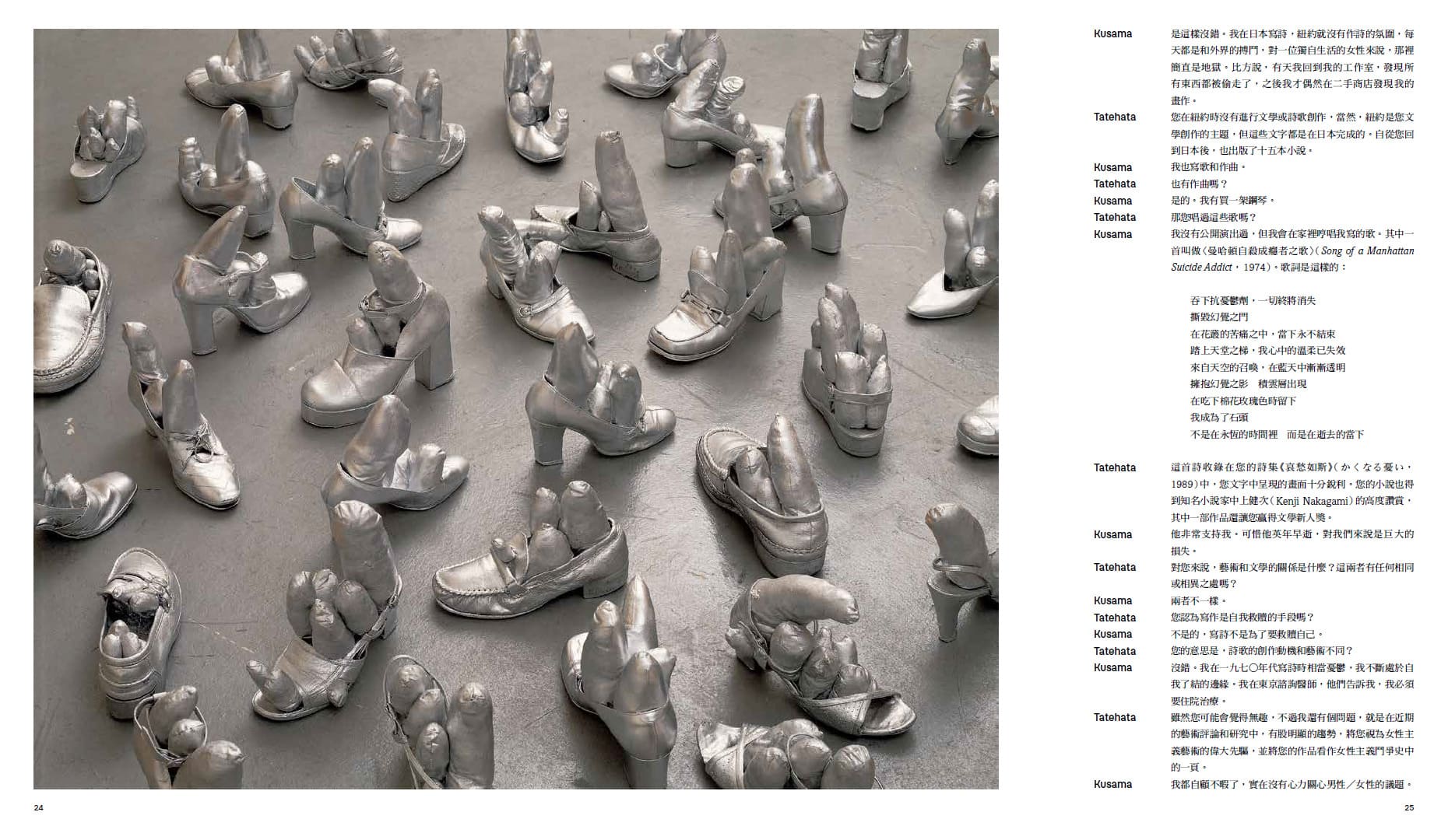 最終,闔上這本書,你會發現,這些都是草間彌生——或許也都不是,因為她從不願被定義、拒絕被貼上任何標籤;也許她仍是當年那個初次見到幻覺的小女孩,只想擺脫眼前的一切。而就在這不斷創作、不斷逃離又復返的過程裡,她早已為自己打造出一個可以忘卻肉身、拋開世俗羈絆的空間;她就像乘著一艘美麗的小船,緩緩駛向永恆,而我們只是幸運的站在岸邊,驚鴻一瞥。