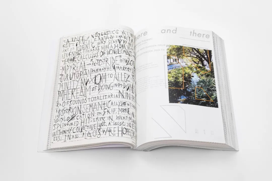同時,在《here and there Vol.1 - Vol.13.5 》合集本中,我們能夠欣賞到服部一成大量運用非對稱佈局、留白和傾斜線條的設計手法,突破常規又極其簡約富有張力的排版風格,打破傳統雜誌橫平豎直的框架;這種自由式的設計強化了雜誌的藝術氣息和視覺化的溫度。