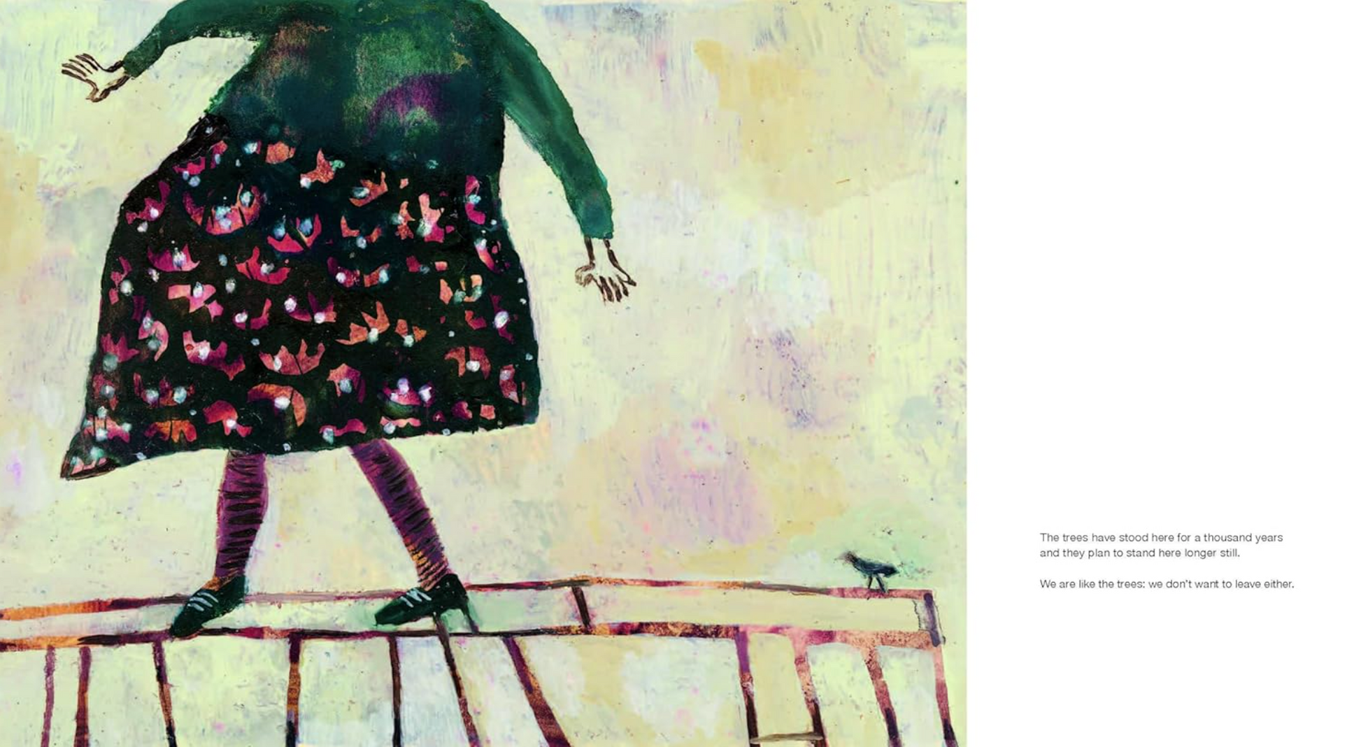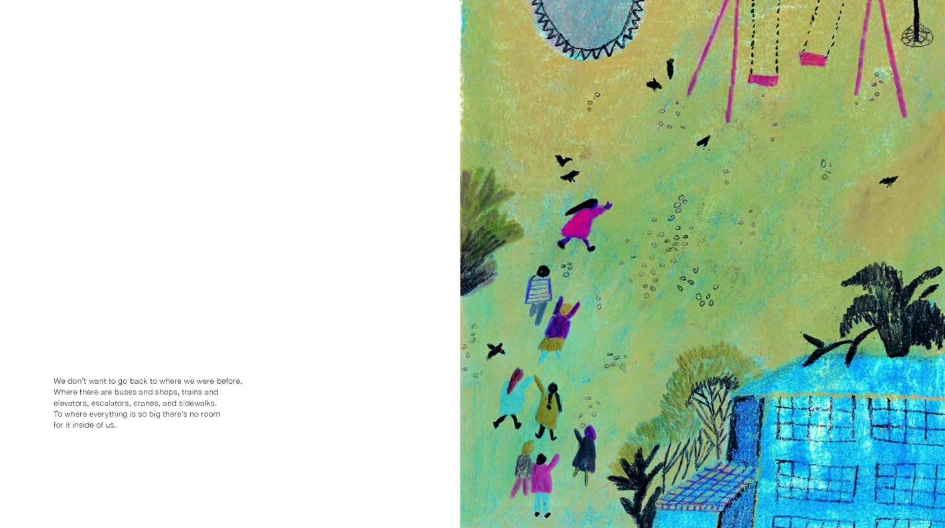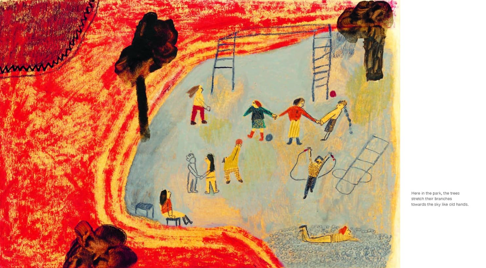 公園呼喚我們拋開日常瑣事,進入它無盡可能的領域。在公園裡,最重要的是當下,以及在想像、發明、觀察、與永恆中迷失時間。前往公園的不是孤獨的「我」,而是「我們」,在那裡,偶然的相遇可能瞬間轉化為與他人、自然以及我們自身之間深刻的連結,提醒成年讀者在日常中蘊含著平凡的美好。